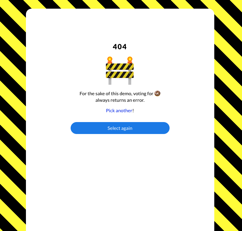 我们可以选择页面中喜欢的表情进行投票,但是选择某些表情后会出现一些错误,比如当我们点击甜甜圈表情符号的时候会得到一个 404 页面。